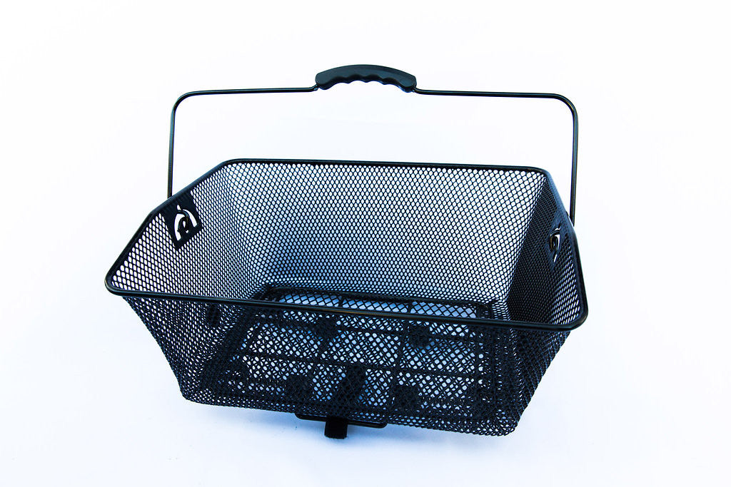 Rear rack mounted basket. Two type available. Traditional screw mounted rack basket or clip on basket. Great for folding bikes.